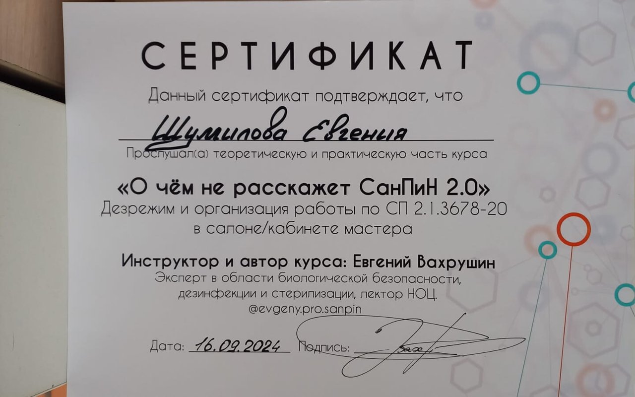 Места работы специалиста по красоте Евгении Ивановны Шумиловой