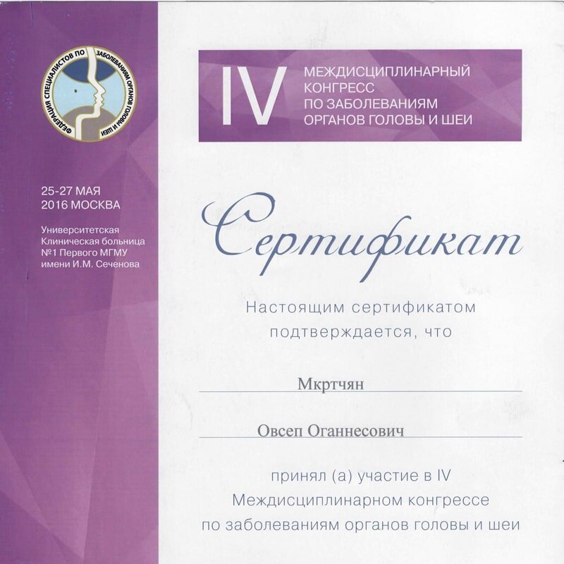 2016–2016 — IV Междисциплинарный конгресс по заболеваниям органов головы и шеи