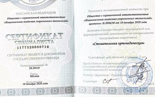 2020 — Общество с ограниченной ответственностью «Национальная академия современных технологии». «Стоматология ортопедическая»