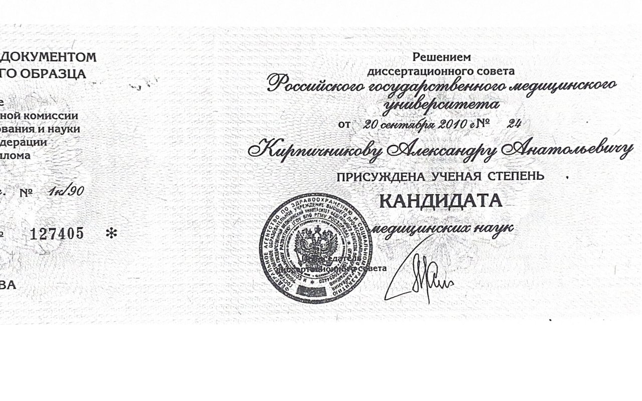 Места работы врача Александра Анатольевича Кирпичникова