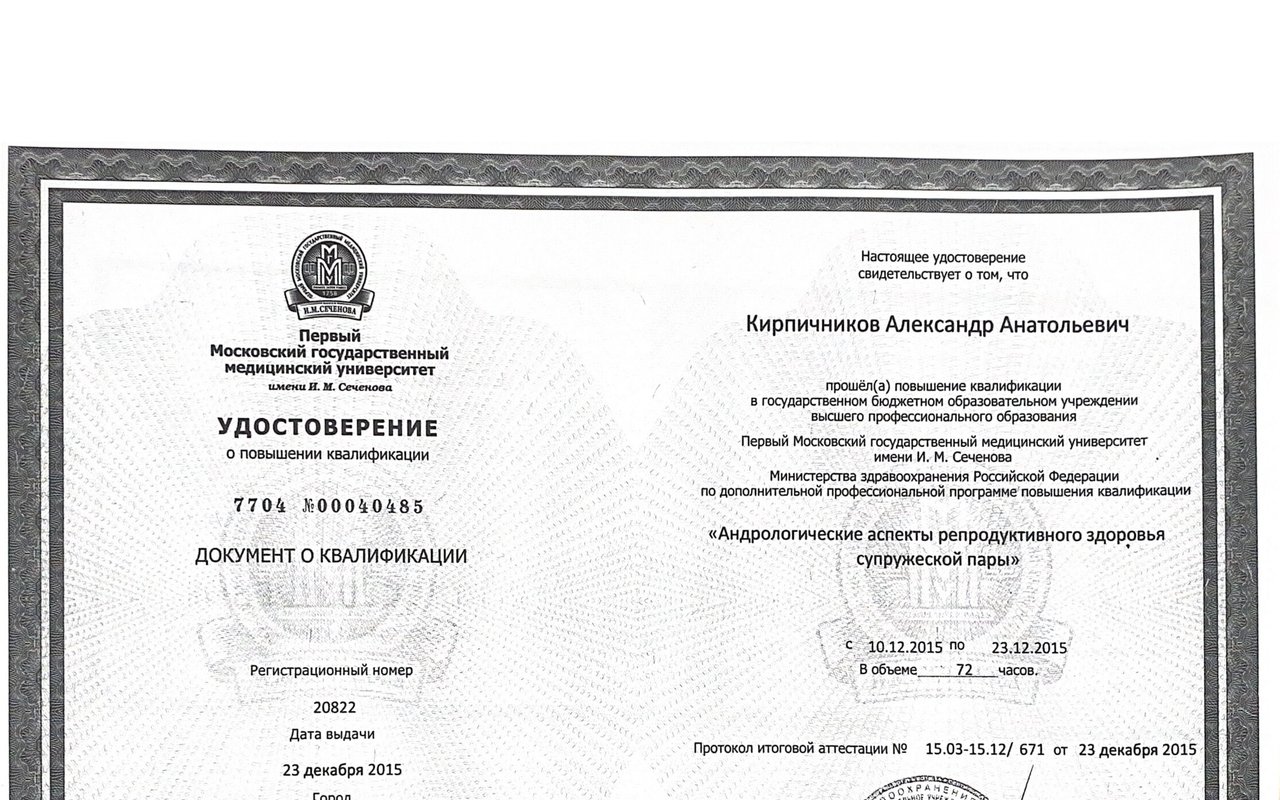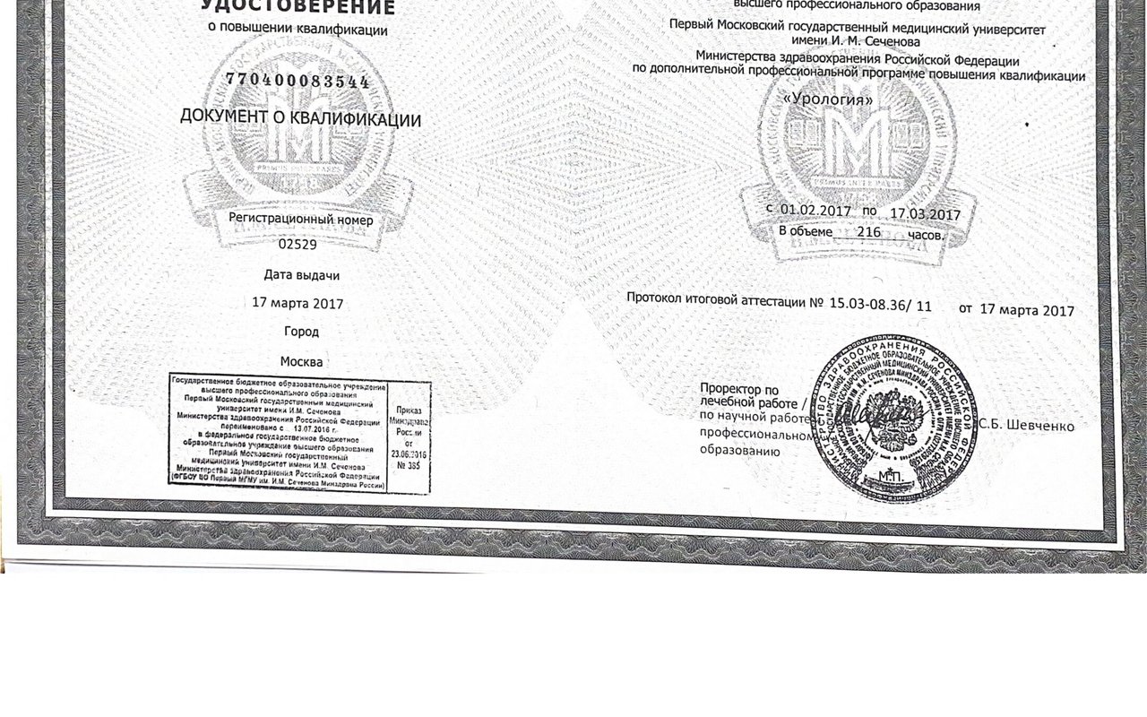 2015 — Первый московский государственный медицинский университет им. И.М. Сеченова (урология и андрология)