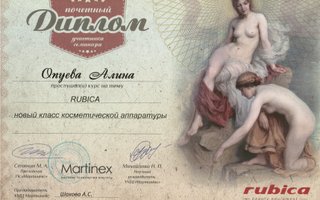 2016г. — Аппаратная косметология. Применение нового класса косметической аппаратуры Rubica. (Martinex). 2016г. — Лазерная эпиляция на диодном аппарате MedioStar Effect, Syneron.
