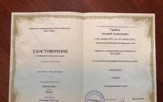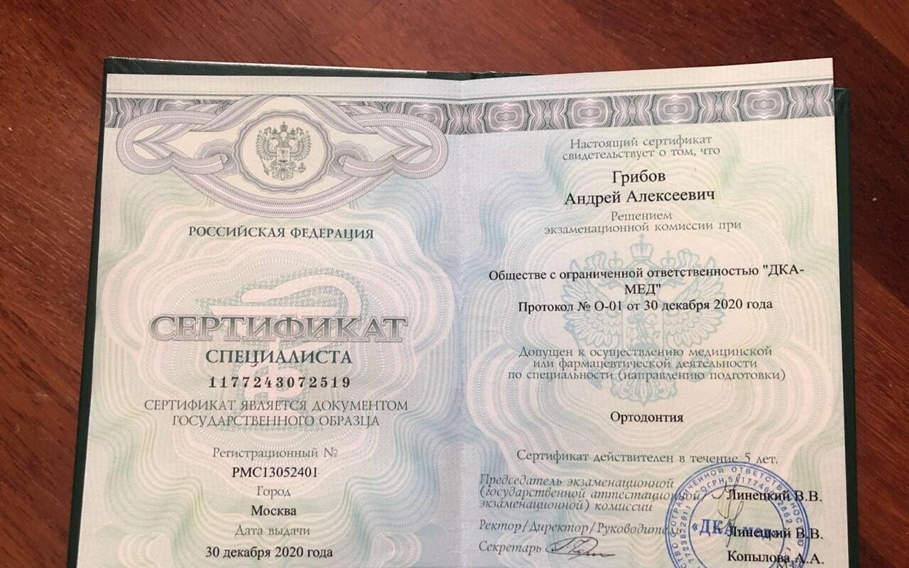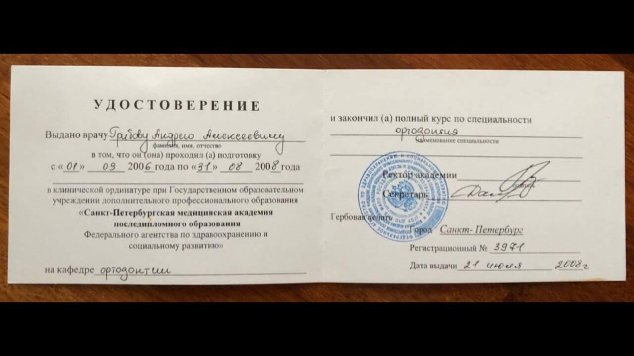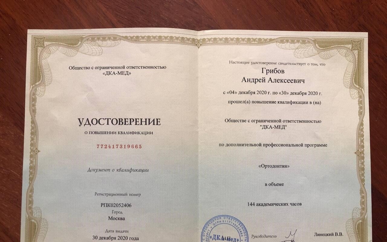30 декабря 2020 — Удостоверение о повышение квалификации " Ортодонтия" №772417319665 Регистрационный номер: РПК02052406 Москва