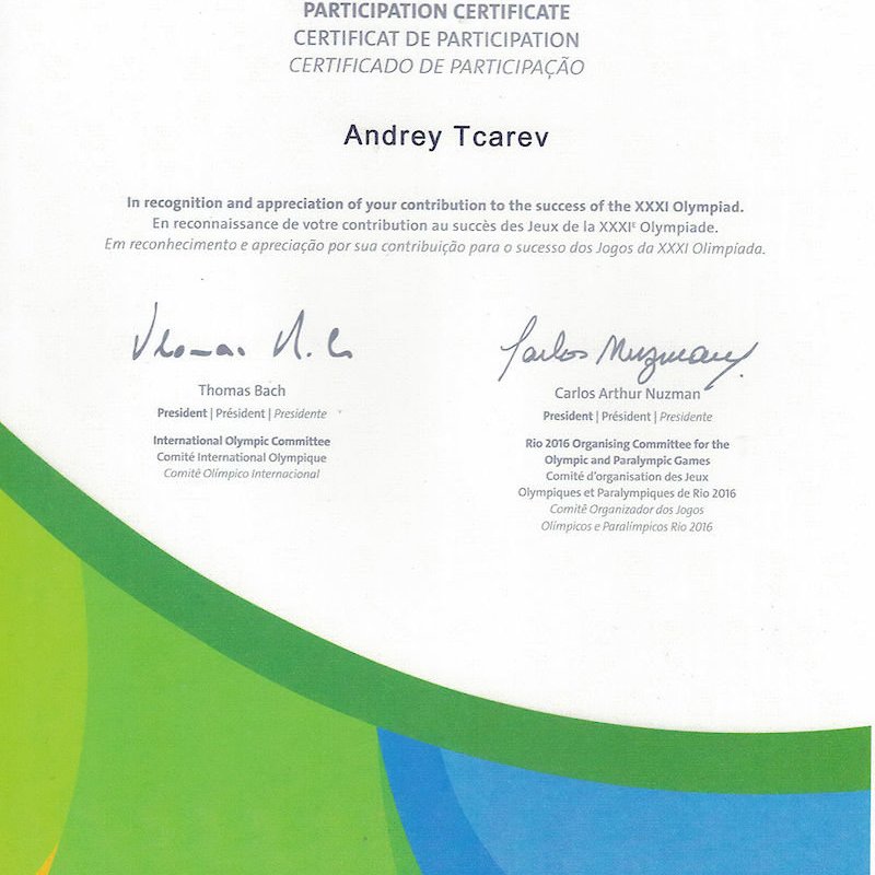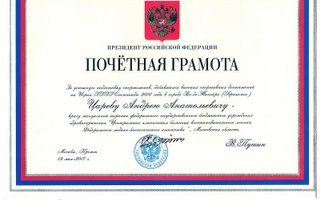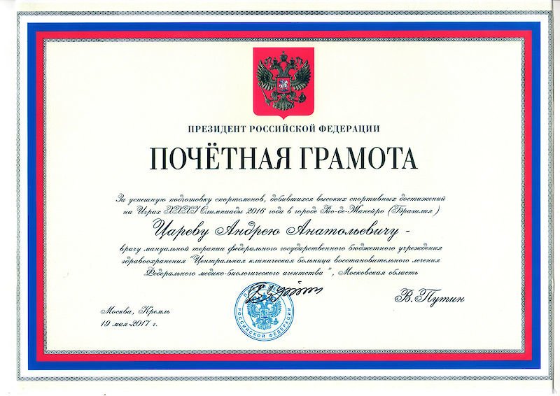 Президент Российской Федерации Путин В.В. вручил «Благодарность» за заслуги в подготовке и проведении XXII Олимпийских зимних игр и XI Паралимпийских зимних игр 2014 года в г. Сочи