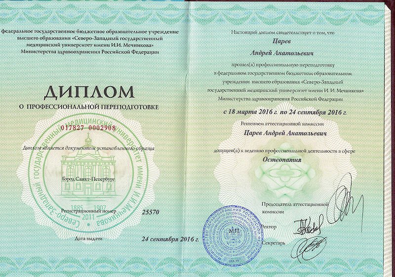 2016 — "Остеопатия", Северо-Западный государственный медицинский университете им. И.И. Мечникова