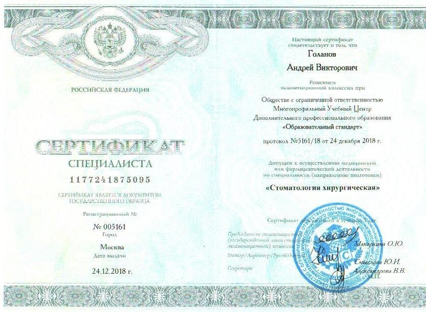 - Есть ли у Голанова Андрея Викторовича нужные лицензии?
