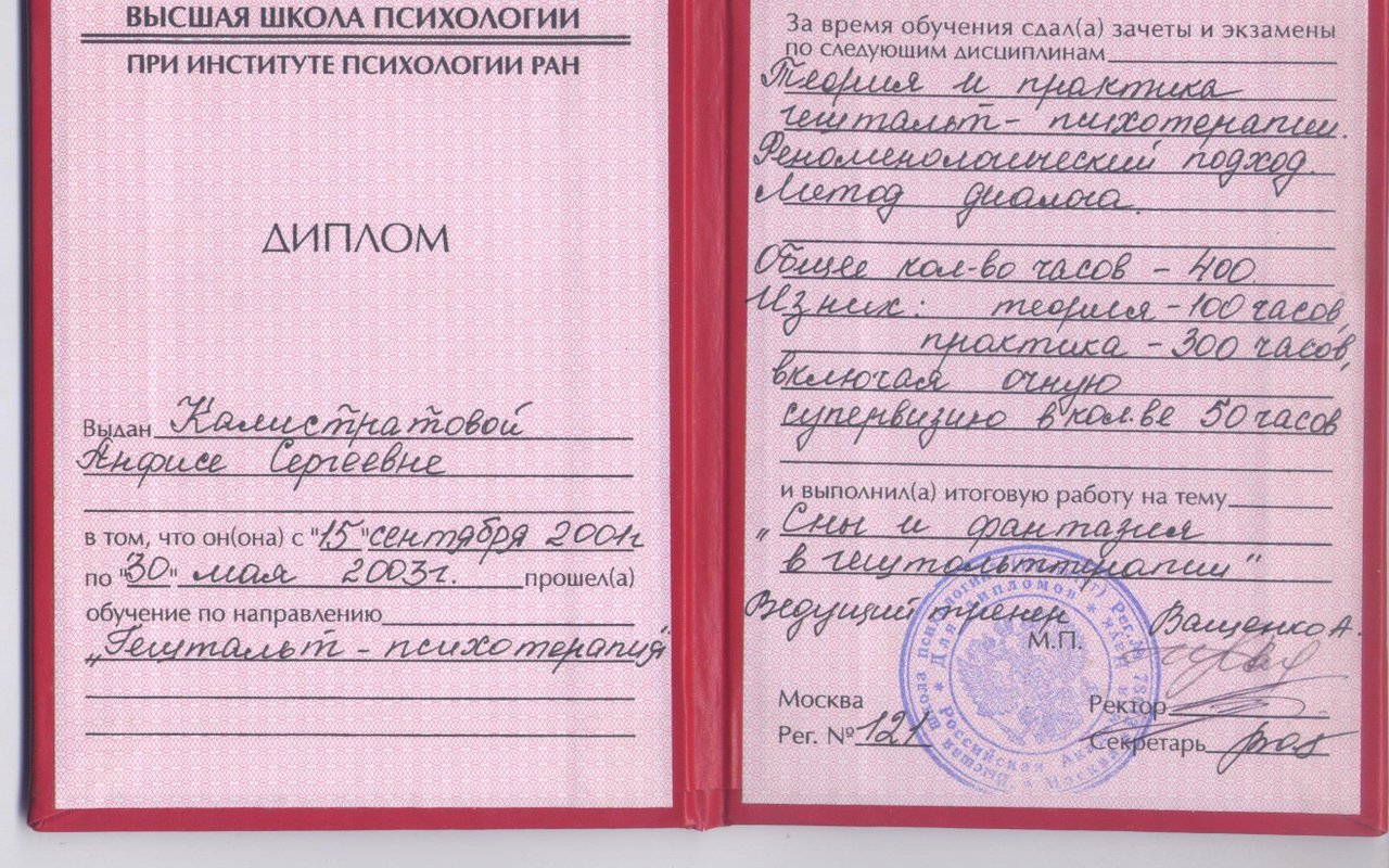 Отзывы о враче Анфисе Сергеевне Калистратовой