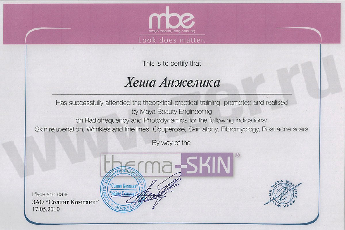 2007 — 2007г.– Учебно-методический центр Martin'ex – “Мезотерапия в терапевтической косметологии и эстетической медицине”