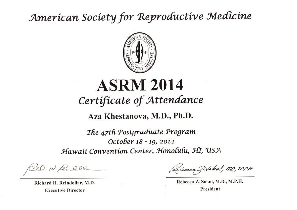 American Society for Reproductive Medicine (ASRM). (американская ассоциация репродуктивной медицины). Имеет опыт работы более 20 лет в ведущих европейских и американских клиниках репродукции.
