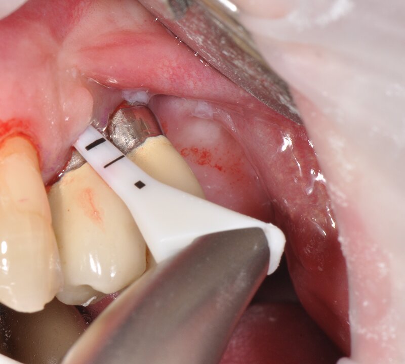 Удалите биоплёнку в карманах от 4 до 9мм и до 9 мм вокруг имплантатов.