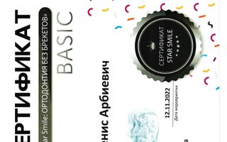2022–2022 — Сертификат StarSmile "Ортодонтия без брекетов"