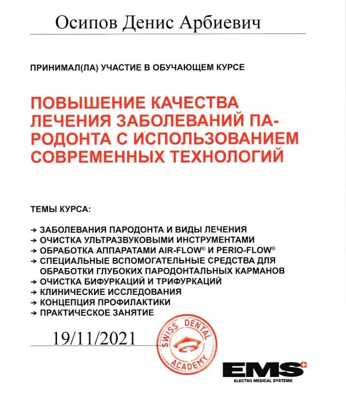 2021–2021 — Swiss Dental Academy (Швейцарская стоматологическая академия)