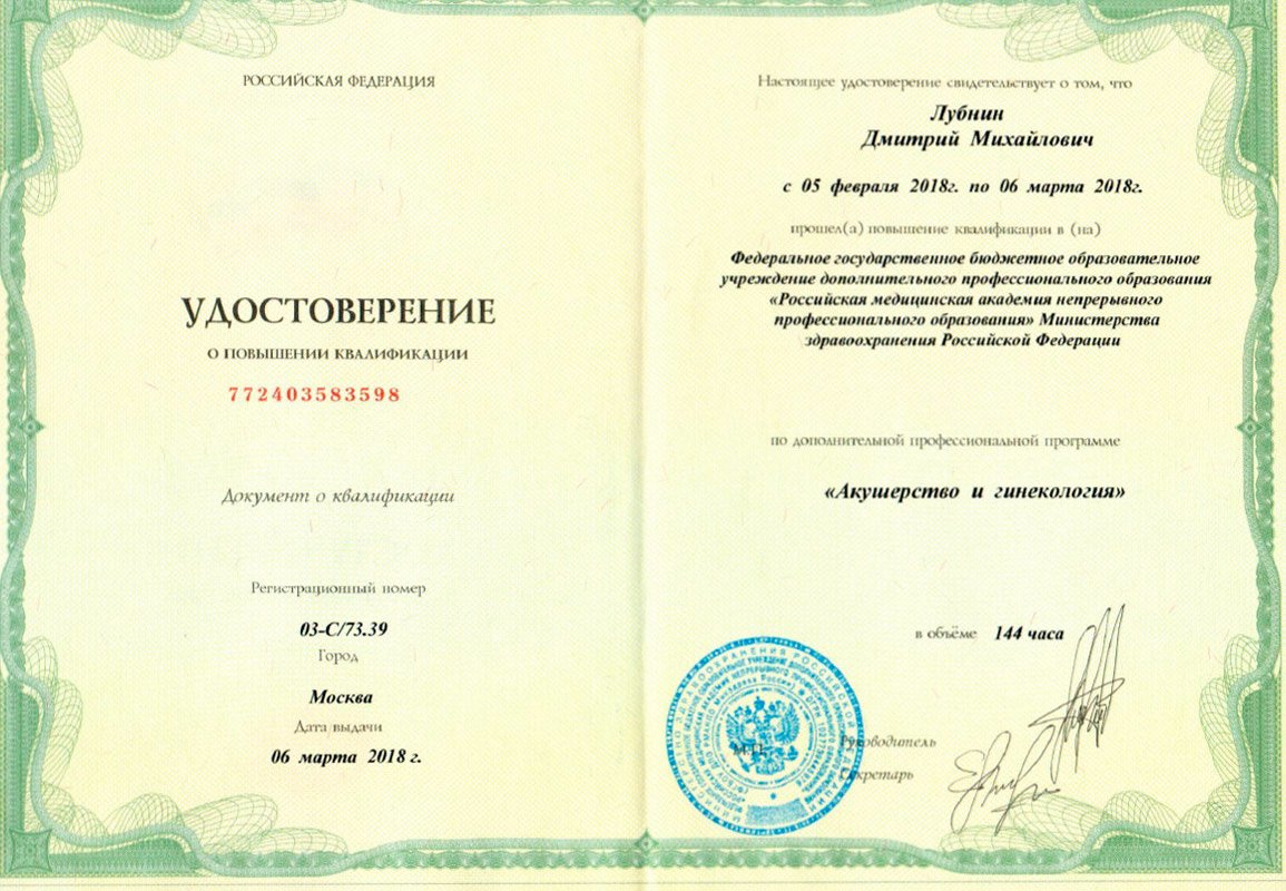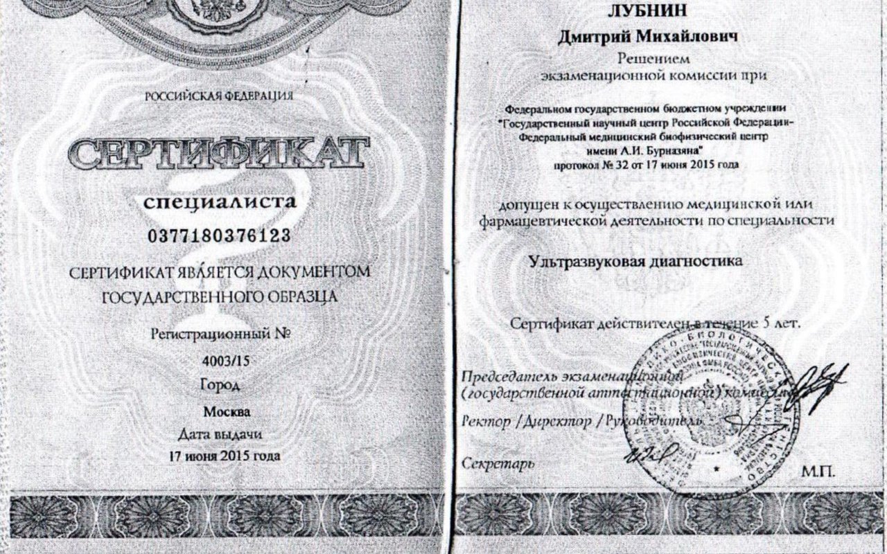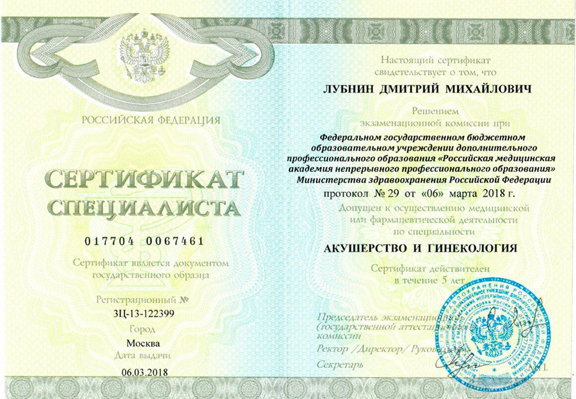 - Есть ли у Лубнина Дмитрия Михайловича требуемые сертификаты?