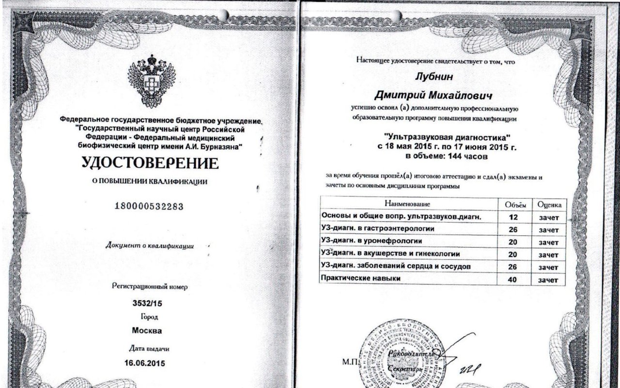2015 — Федеральный медицинский биофизический центр имени А.И.Бурназяна (ультразвуковая диагностика)