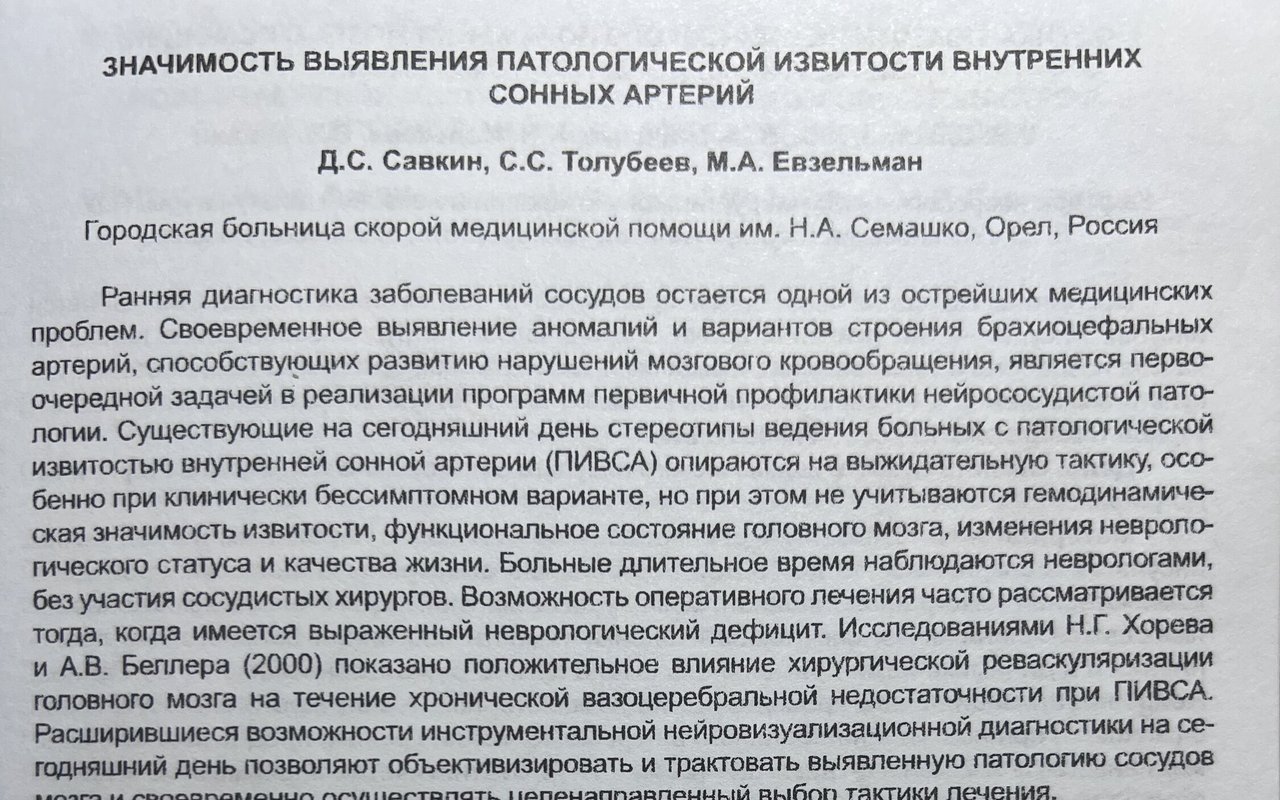 2018 — Ультразвуковые исследования внечерепных отделов брахиоцефальных артерий