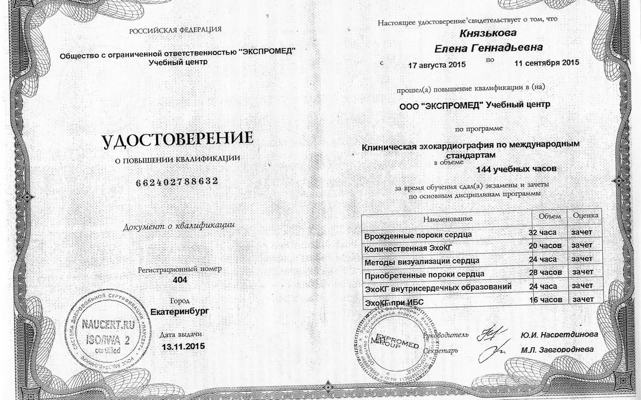 - Есть ли у Князьковой Елены Геннадьевны необходимые сертификаты?