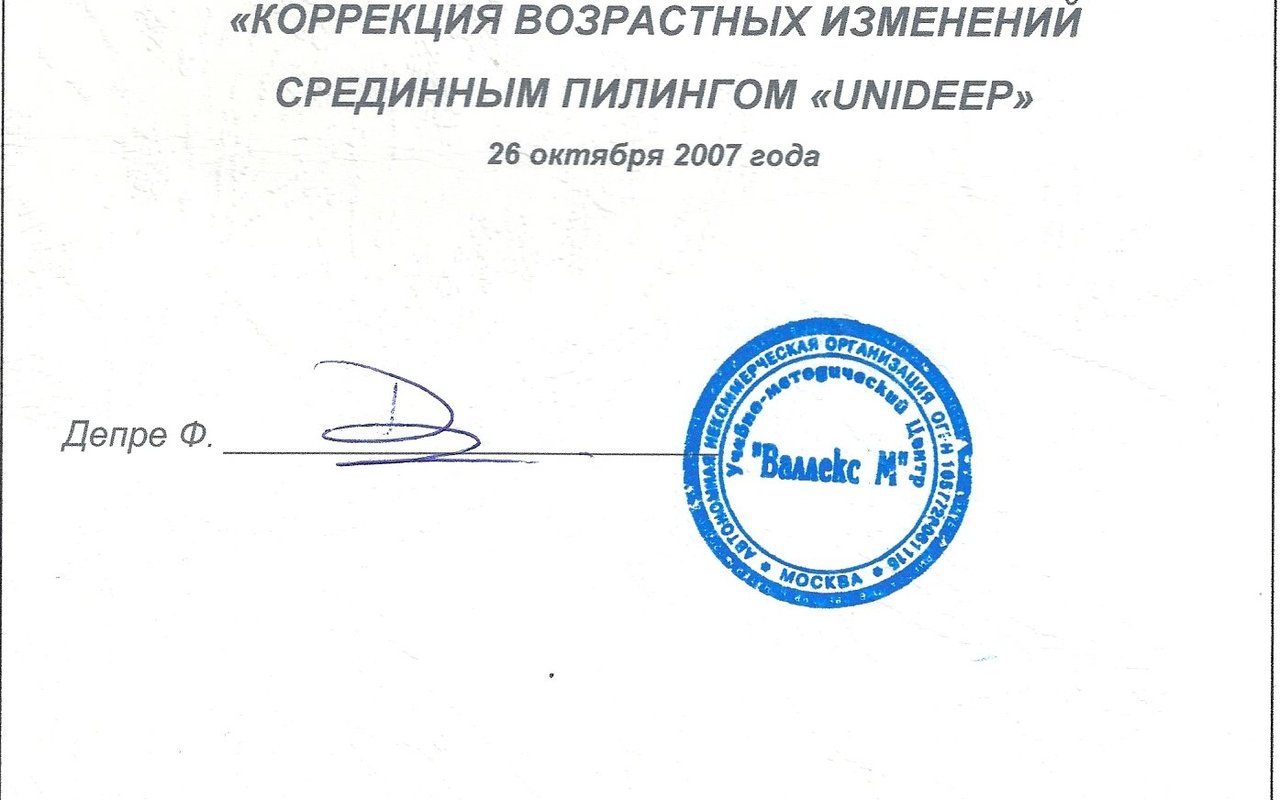 2007 — Коррекция возрастных изменений срединным пилингом "Unideep", Москва