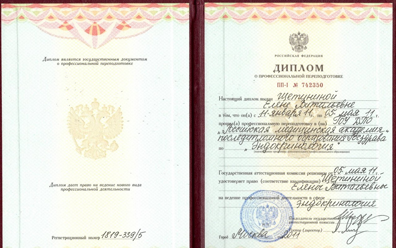 Места работы врача Елены Витальевны Щетининой