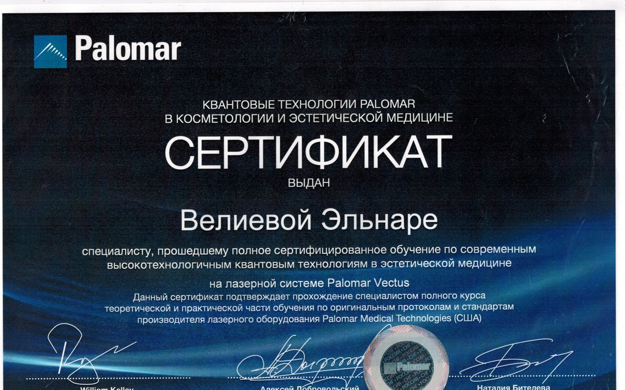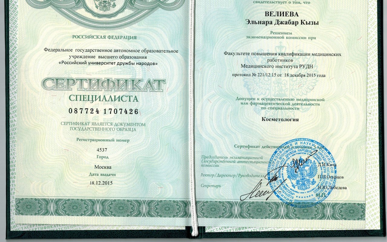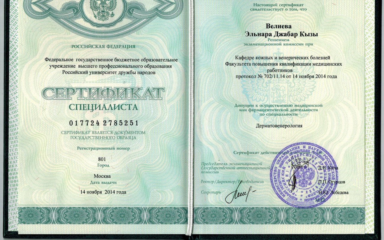 - Есть ли у Велиевой Эльнары Джабаровны требуемые сертификаты?