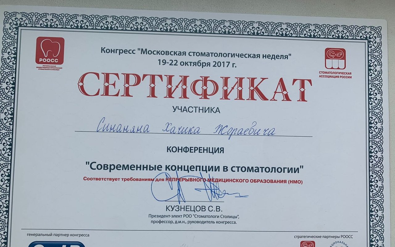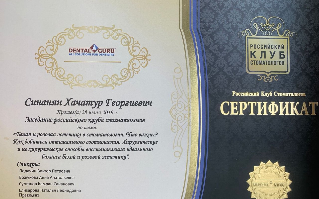 - Есть ли у Синаняна Хачатура Георгиевича требуемые сертификаты?