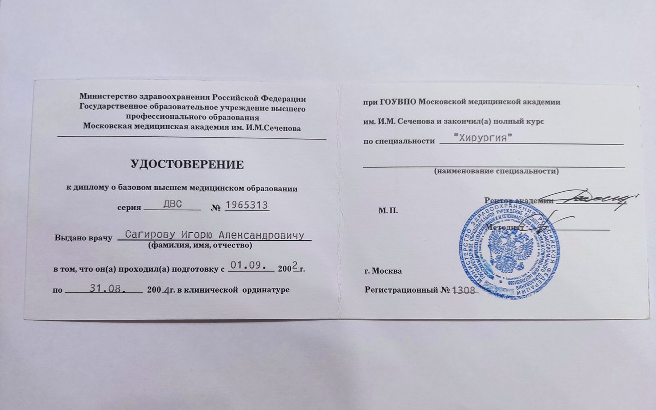Места работы врача Игоря Александровича Сагирова