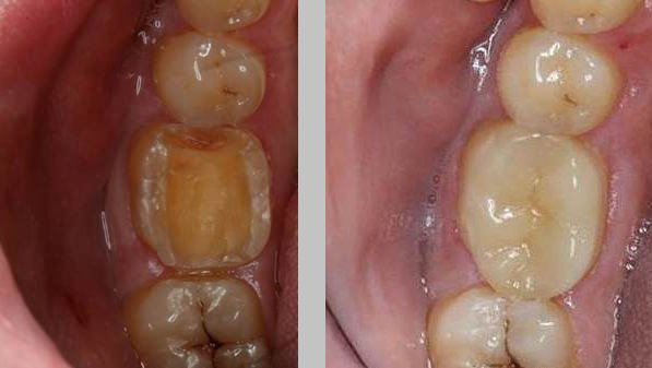 Восстановление зуба при лечении кариеса без поврежденного контактного пункта