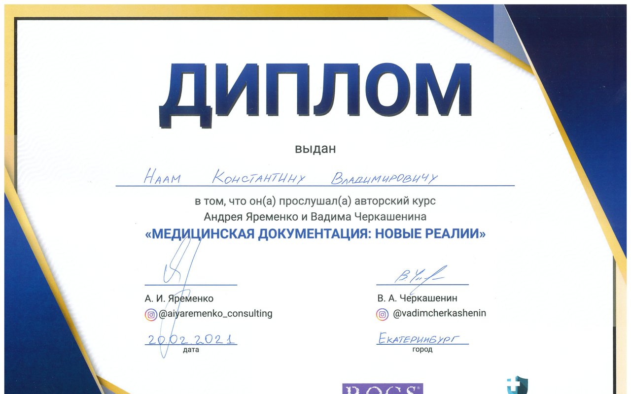 - Есть ли у Наама Константина Владимировича необходимые сертификаты?