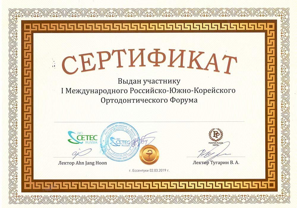 2019 г., участвовала в I международном Россиско-Южно-Корейском ортодонтическом форуме, г. Ессентуки;
