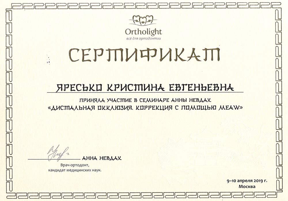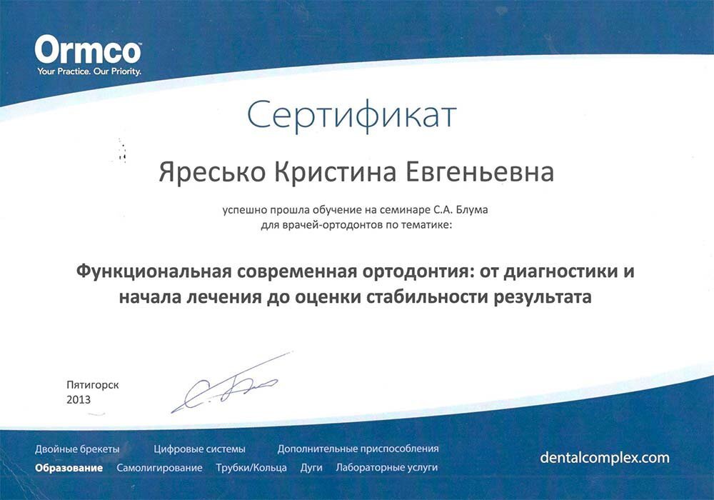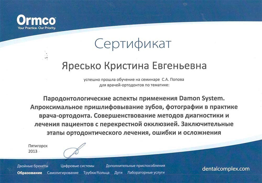 - Есть ли у Яресько Кристины Евгеньевны требуемые сертификаты?