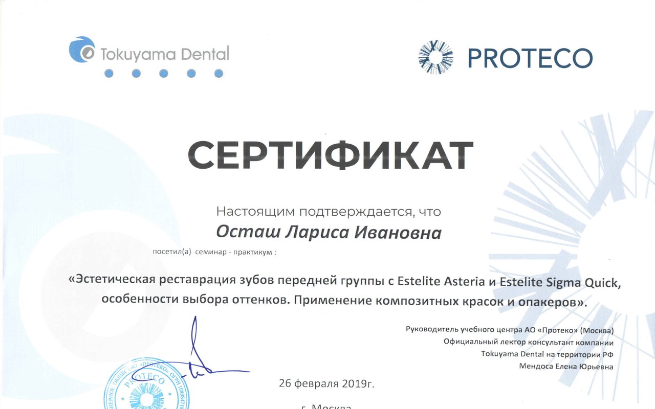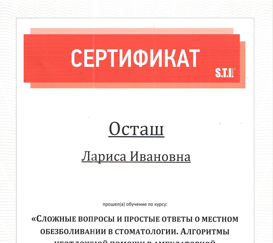 2020 — Повышение квалификации в АНО ДПО «Центральный многопрофильный институт» по программе: «Стоматология терапевтическая»