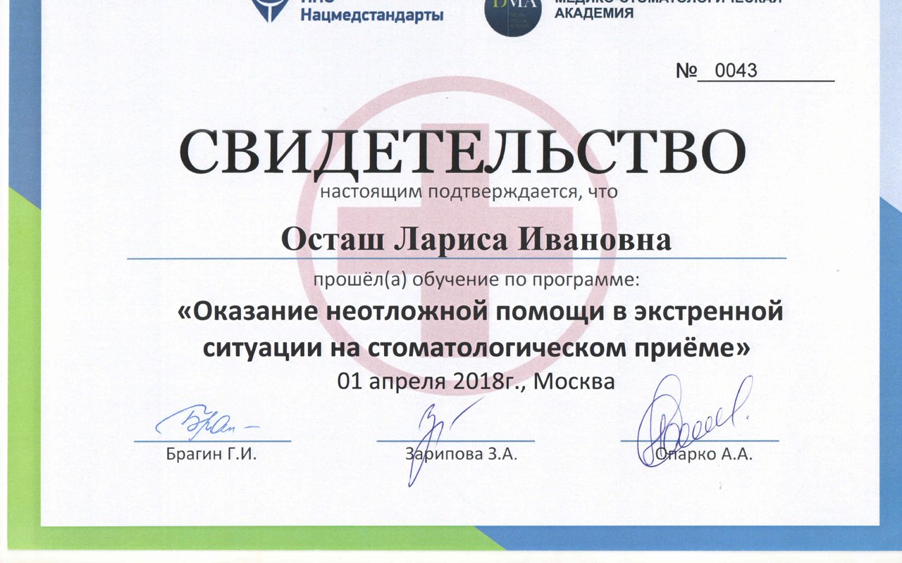 - Есть ли у Осташ Ларисы Ивановны необходимые лицензии?