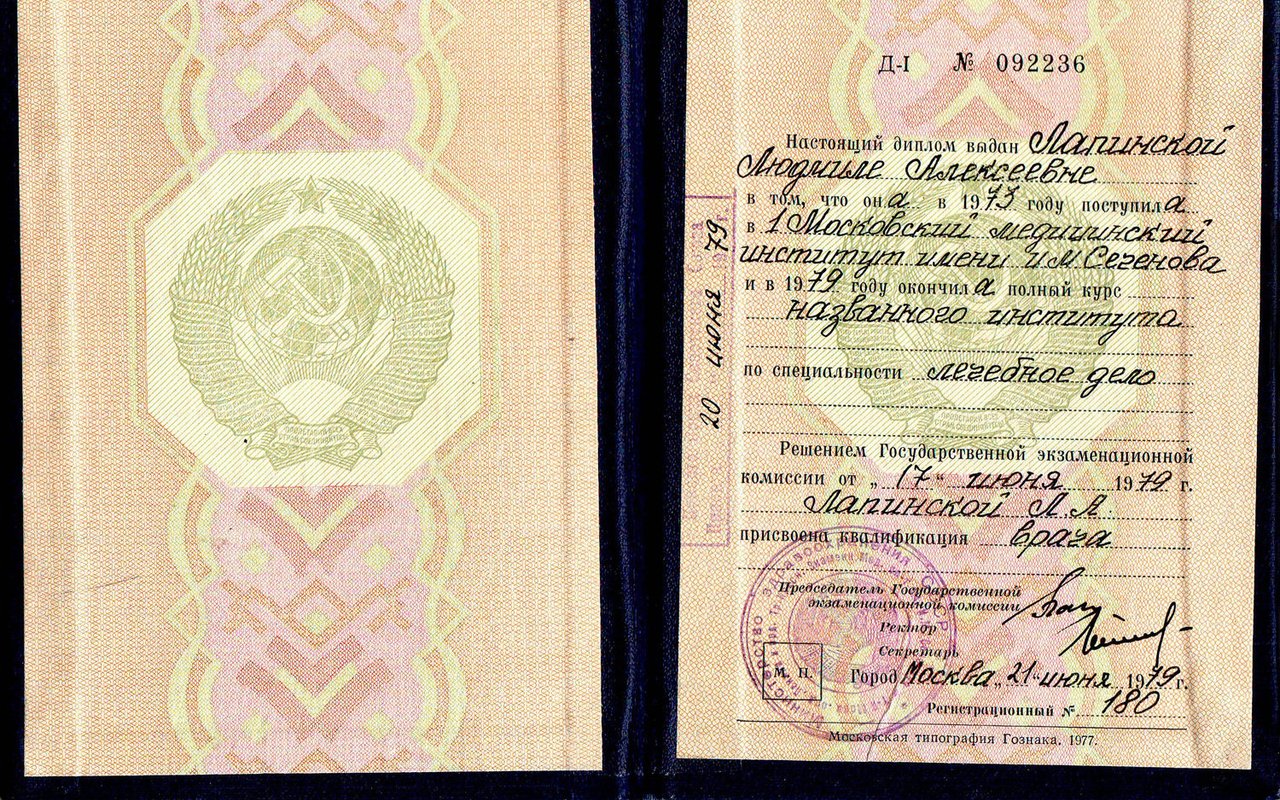 1979 — Первый Московский государственный медицинский институт им. И.М. Сеченова