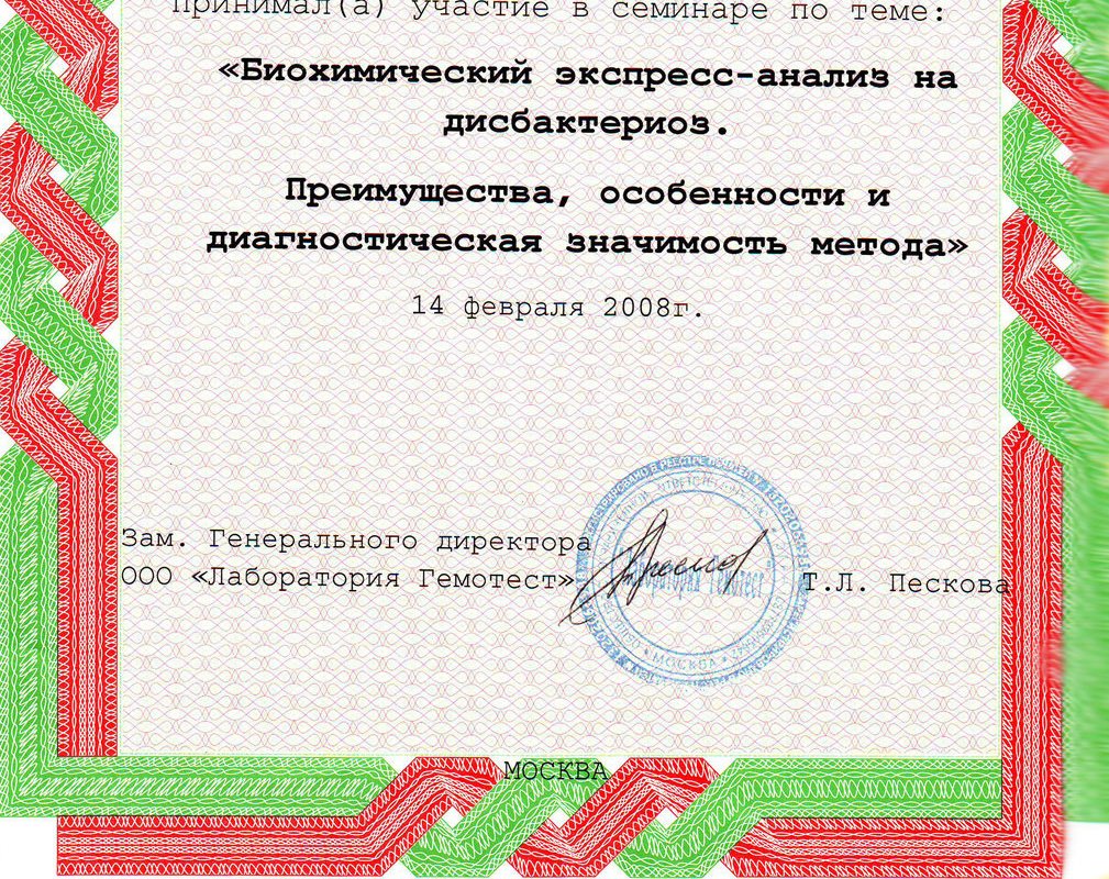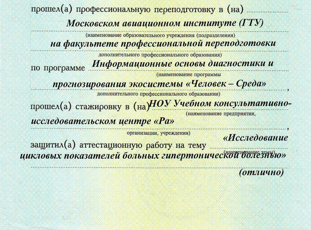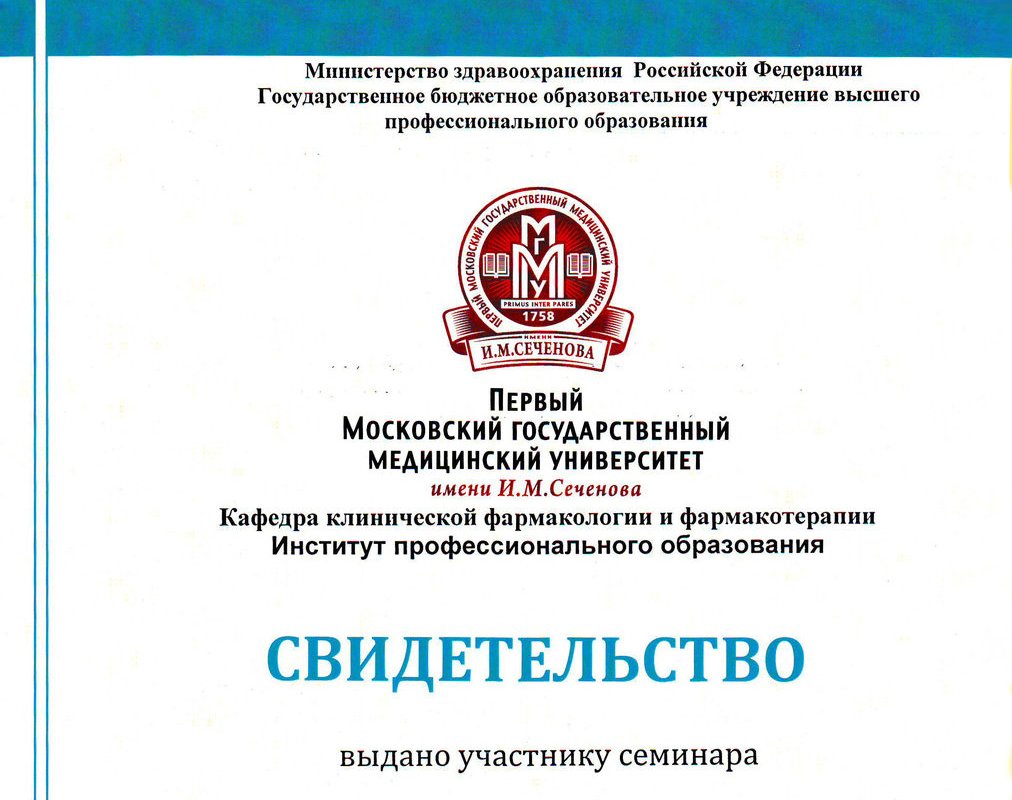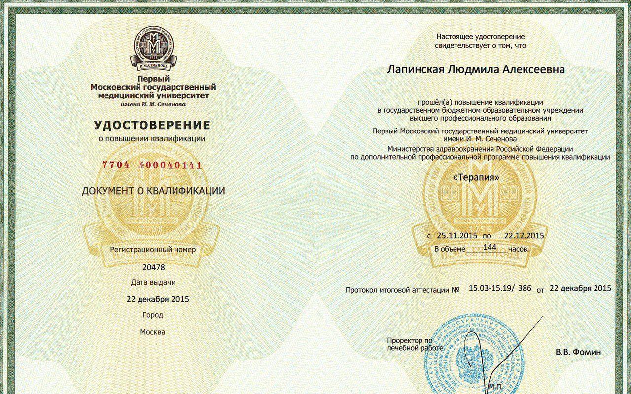 2010 — Курс повышения квалификации по терапии на базе Российской медицинской академии последипломного образования