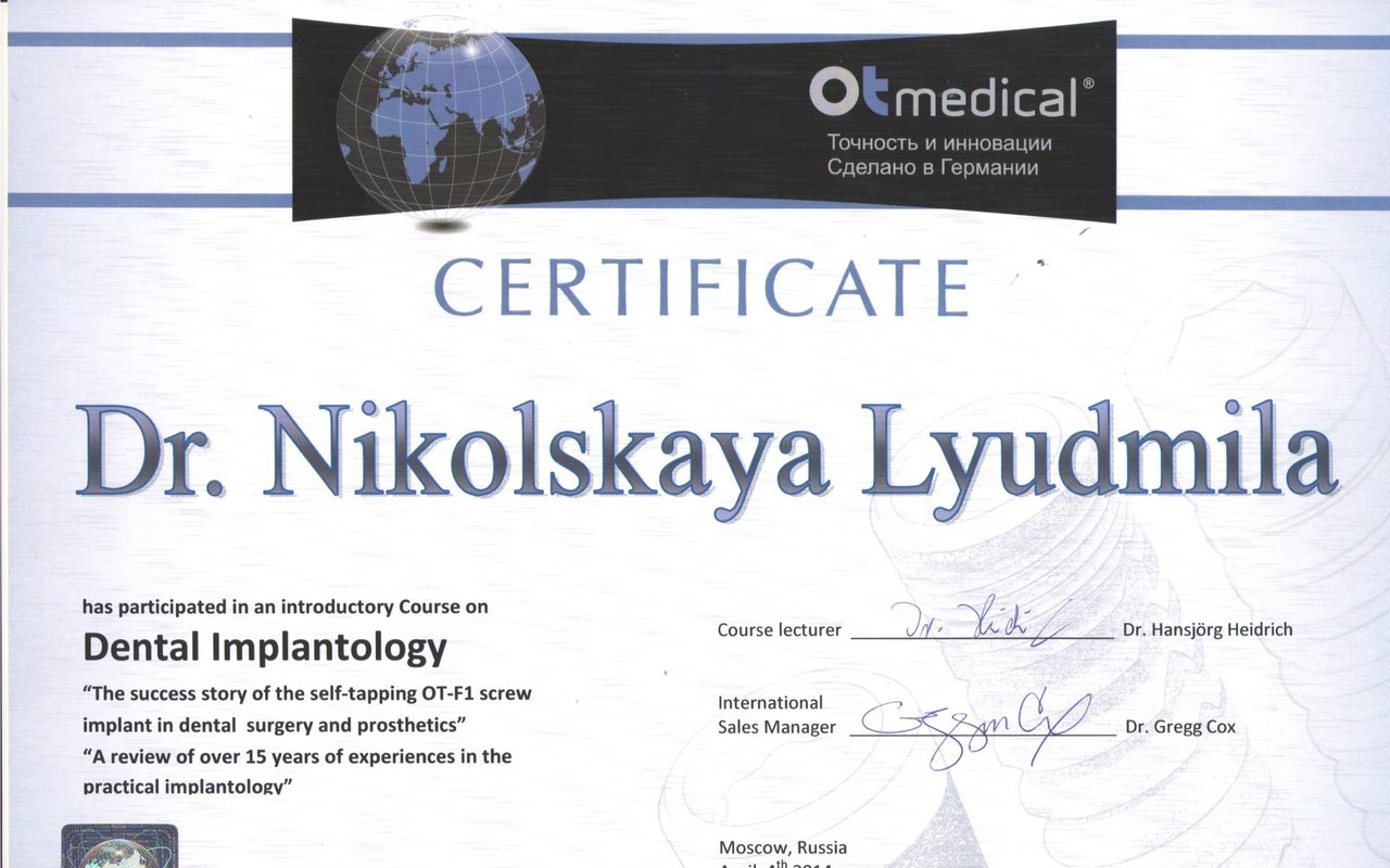 2014 — Курс по дентальной имплантации O.T. Medical