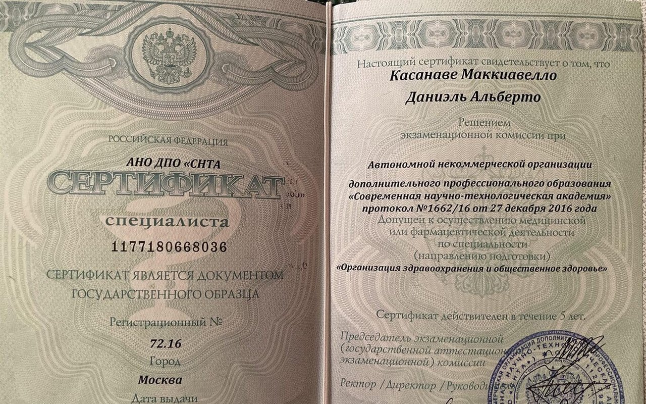 - Какой у Касанаве Маккиавельо Даниэль Альберто профессиональный титул?