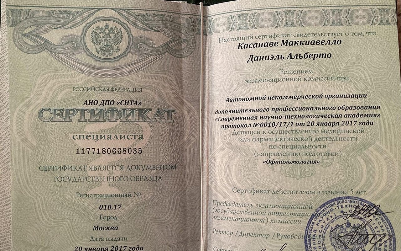 2017 — Автономная некоммерческая организация дополнительного профессионального образования «Современная Научно-технологическая Академия» Москва. Направление «Офтальмология»