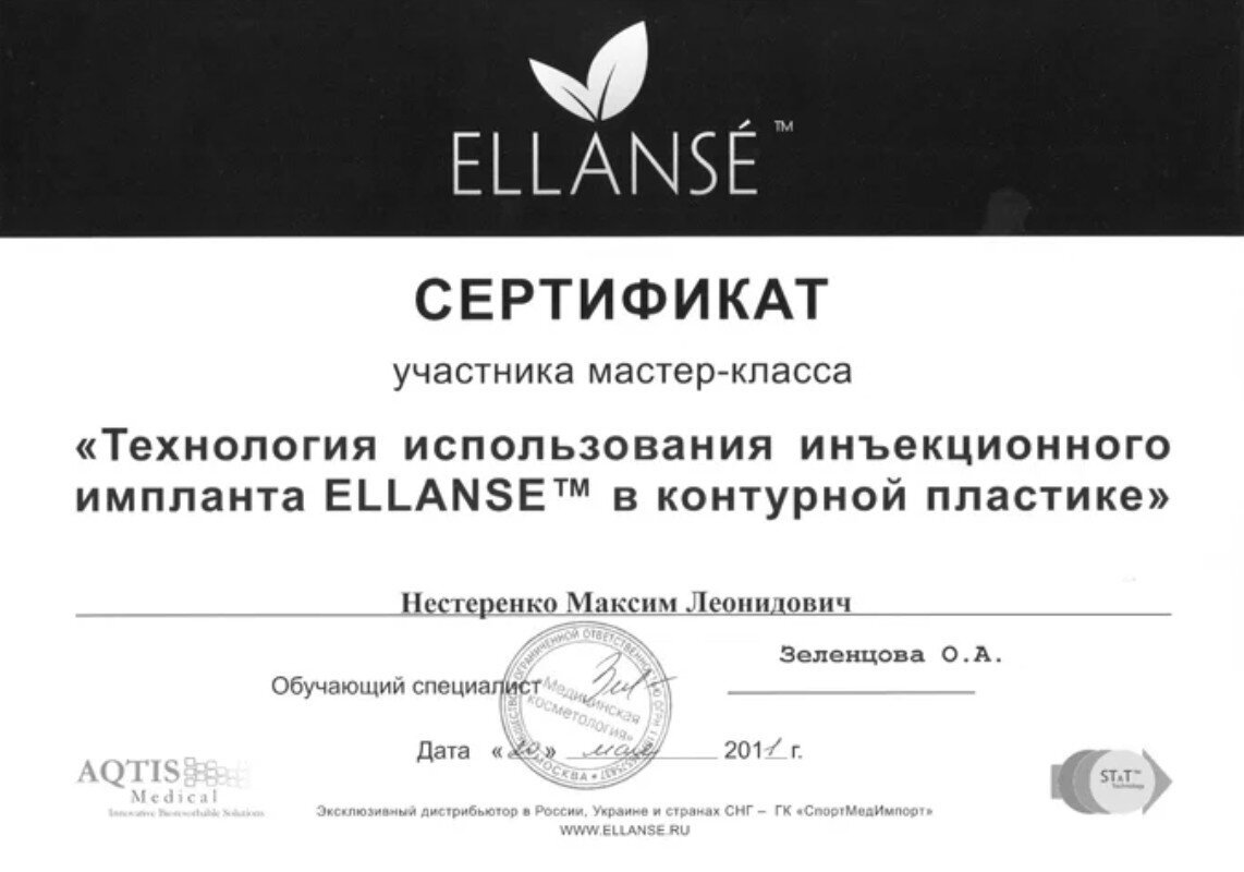 2011 — Мастер-класс "Технология использования инъекционного импланта ELLANSETM в контурной пластике"