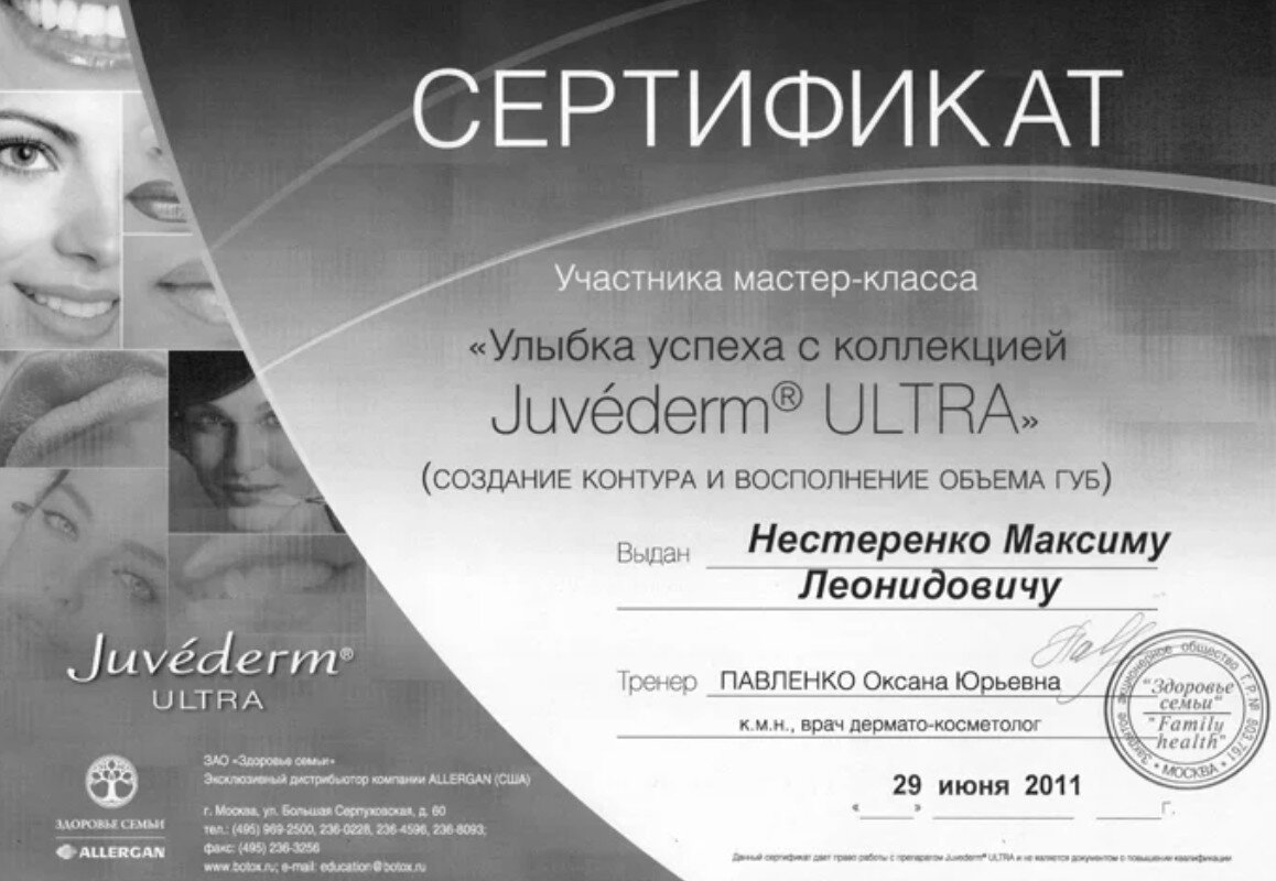 2011 — Мастер-класс "Улыбка успеха с коллекцией Juvederm ULTRA" (создание контура и восполнение объема губ)