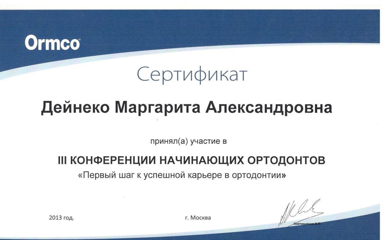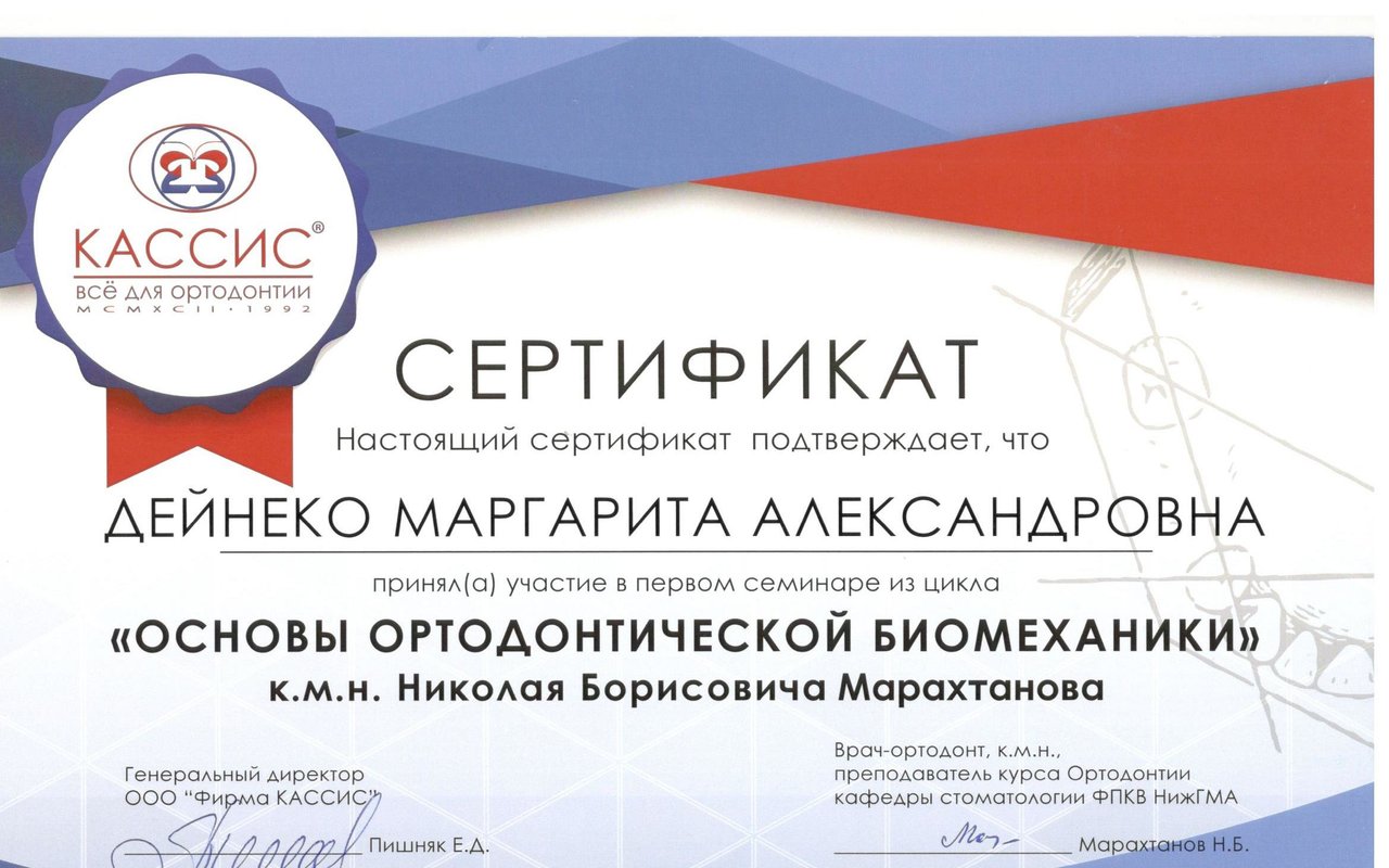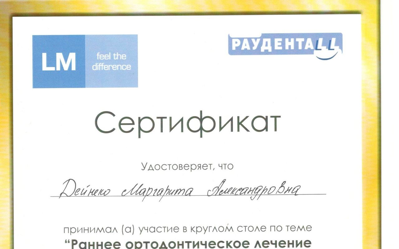 Дейнеко Маргарита Александровна является ортодонтом. Маргарита Дейнеко в том числе выполняет установку функциональных ортодонтических аппаратов, занимается исправлением прикуса, а также проводит ортодонтическое лечение с помощью LM-активатора. Раздумывая о походе к стоматологу-ортодонту, стоит помнить, что неправильный прикус представляет из себя не только эстетическую проблему. Зубочелюстные патологии влияют на работу мышц шеи, строение позвоночника и даже на осанку. Ортодонтическое лечение требует немало времени, но это каждый раз является немаловажной инвестицией в качество жизни и здоровье.... Показать еще