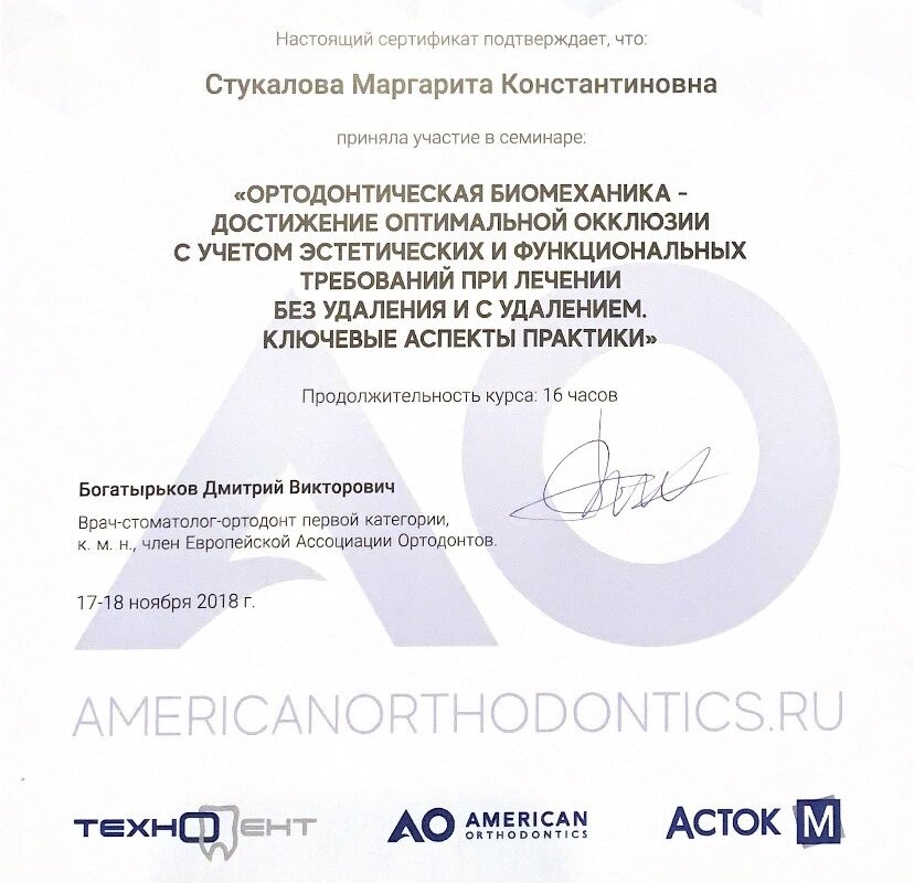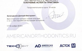 2018–2018 — Ортодонтическая биомеханика- достижение оптимальной окклюзии с учетом эстетических и функциональных требований при лечении без удаления и с удалением. Ключевые аспекты практики Americanorthodontics
