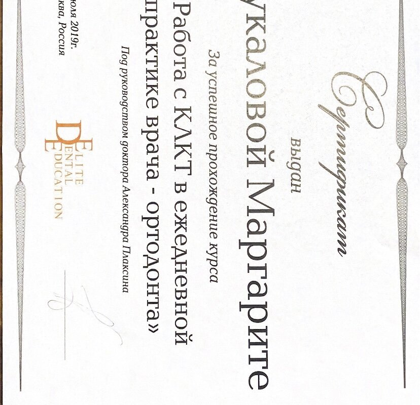 2019–2019 — Работа с КЛКТ в ежедневной практике врача-ортодонта Elite Dental Education