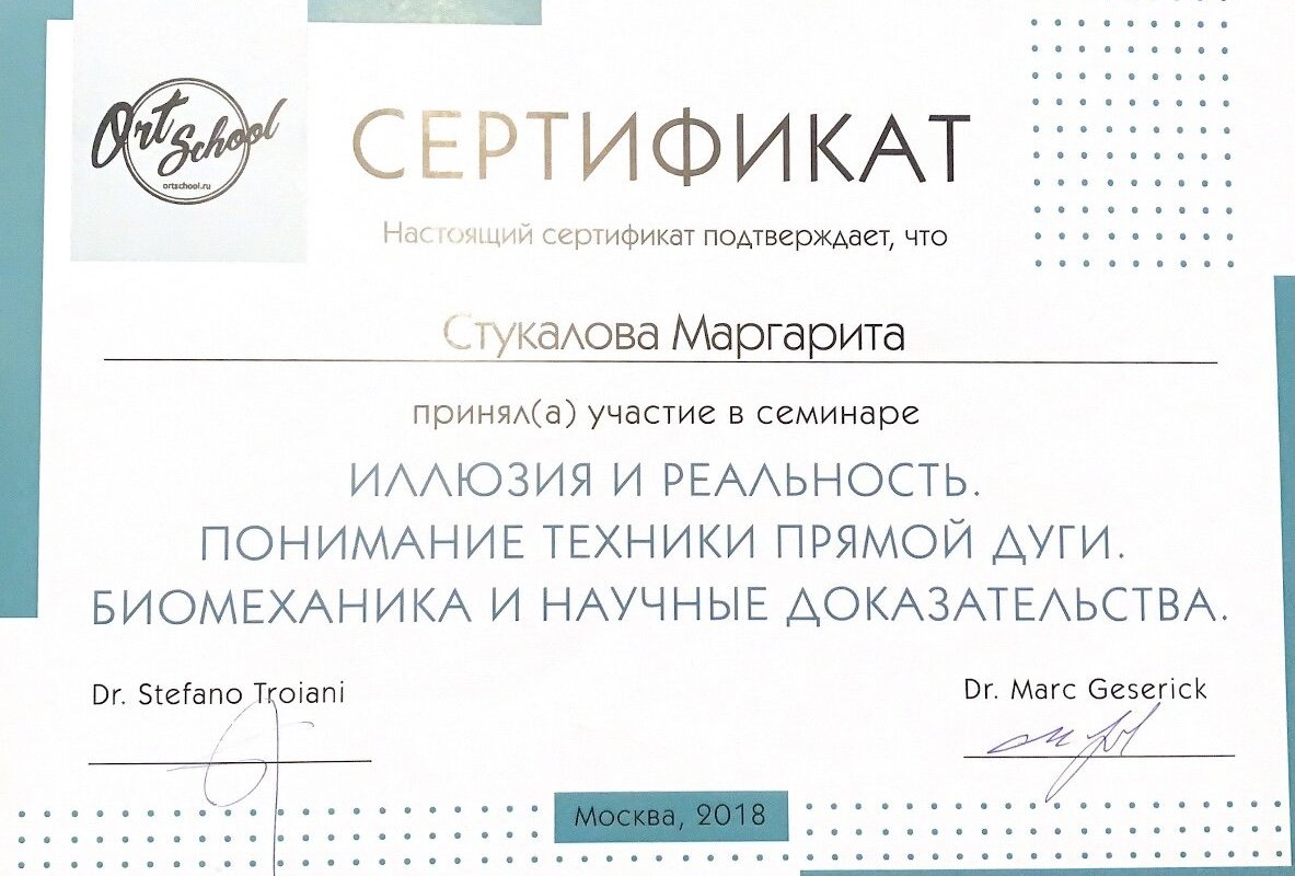 2018–2018 — Иллюзия и реальность. Понимание техники прямой дуги. Биомезаника и научные доказательства. Ort School
