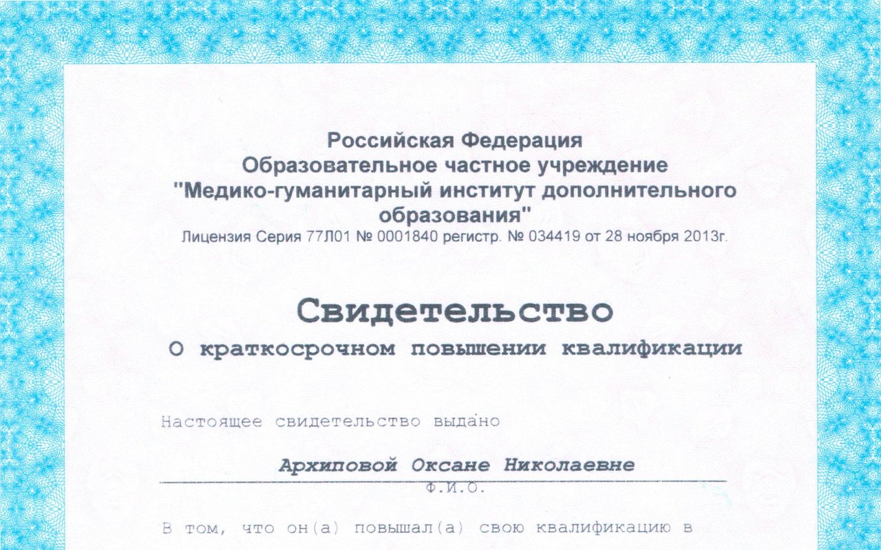 - Можно ли ознакомиться с сертификатами Архиповой Оксаны Николаевны?