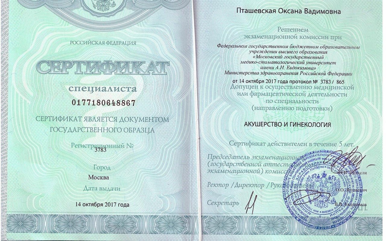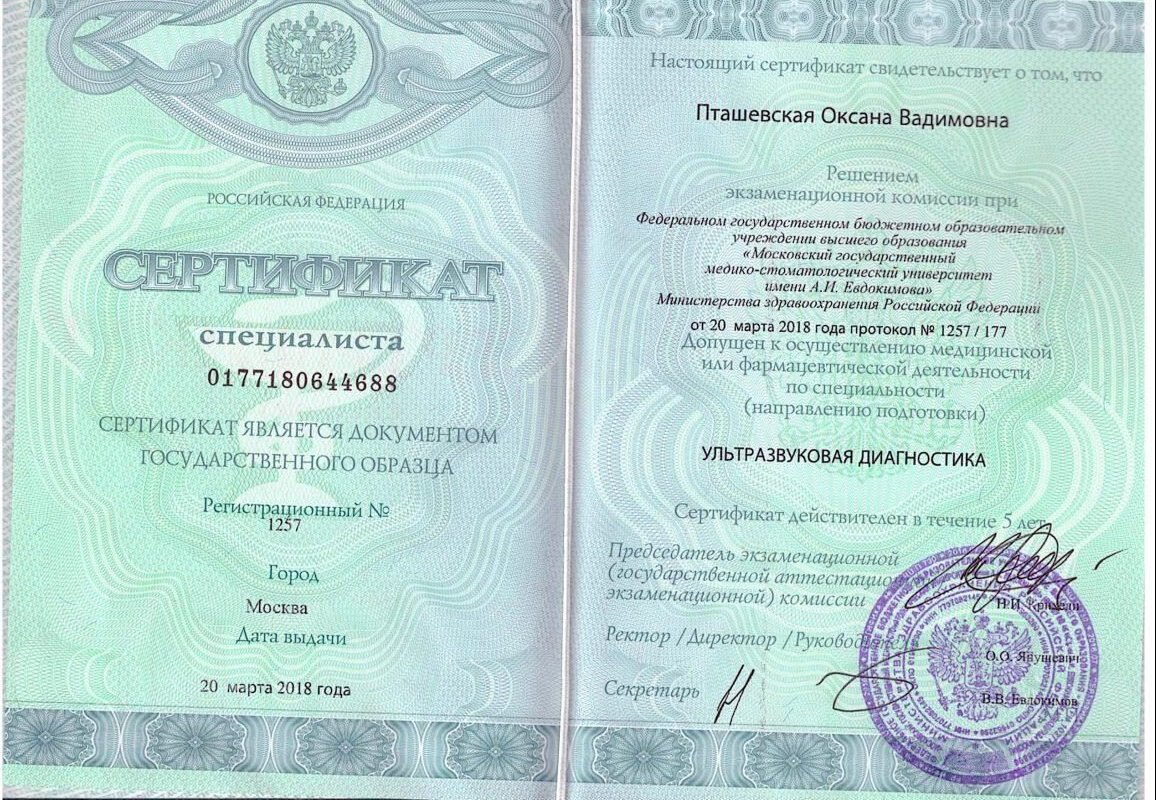 - Есть ли возможность ознакомиться с сертификатами Пташевской Оксаны Вадимовны?