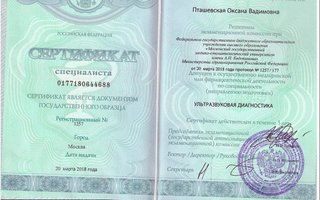 2008г – Профессиональная переподготовка по программе «Ультразвуковая диагностика» в Московском государственном медико-стоматологическом университете