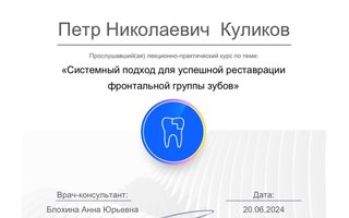 2024 — Системный подход для успешной реставрации фронтальной группы зубов "Dentsply Sirona Academy"