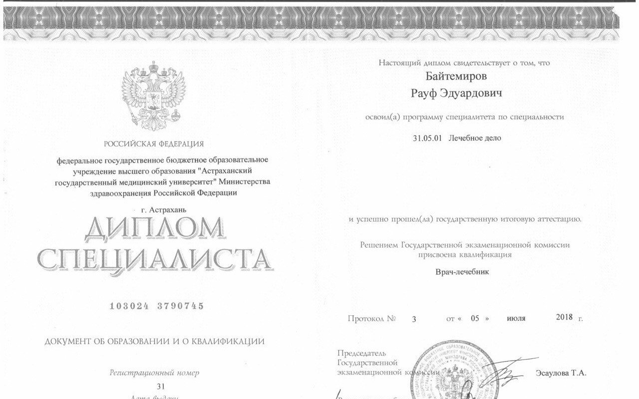 Отзывы о враче Рауфе Эдуардовиче Байтемирове