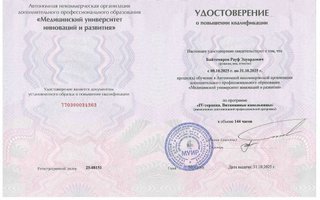 Прошел обучение и регулярно повышает квалификацию на профильных конференциях и курсах. В своей работе сочетает точную диагностику, индивидуальный подход и новейшие технологии.