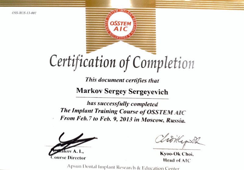 2013 — Московский государственный медико-стоматологический университет Евдокимова (дентальная имплантология.)