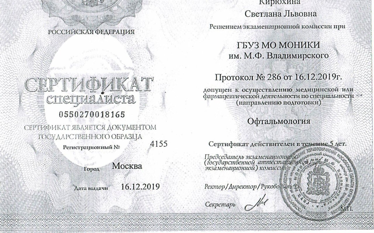Светлана Львовна Кирюхина — опытный и внимательный офтальмохирург, которой доверяют пациенты за её профессионализм и доброжелательное отношение. Она успешно справляется с различными деревянными задачами — от диагностики до операции, оставляя после себя довольных и здоровых пациентов, особенно в области лечения косоглазия и заболеваний век.
